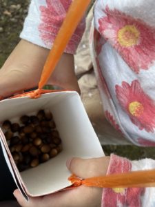 そこには、椎の実やトゲトゲした木の実でしょうか?