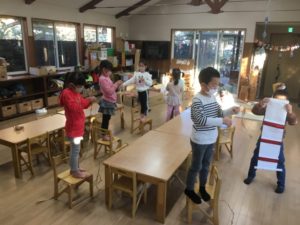 今日は、4メートルの紐に突入する子どもたちが増えました!