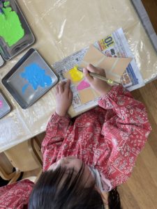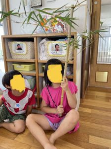 少し短い笹もあったので、「たなばた」の歌にある「笹の葉さらさら」ってどんな音がするのかな?と笹を揺らしてみて、音も楽しみました♪