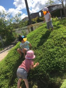 久しぶりの広い園庭に喜び