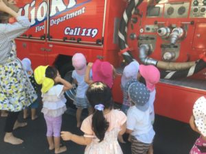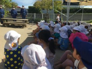 園庭に逃げると、消防士の方がお話をしてくださいました。