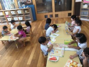 いつものように絵本の時間を過ごしているお友達。