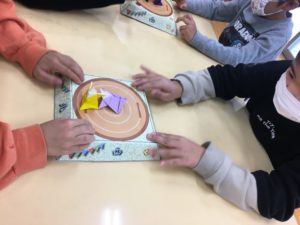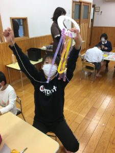 紐を通したり、紙テープやスズランテープで微調整・・・