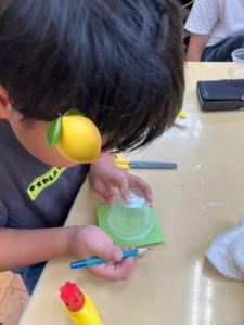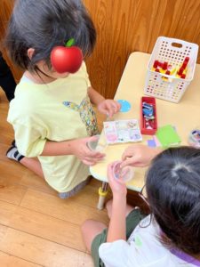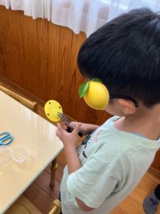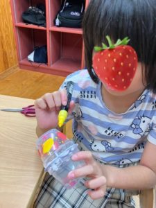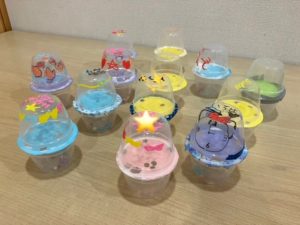 もずくカップを使っておもちゃを作りました。