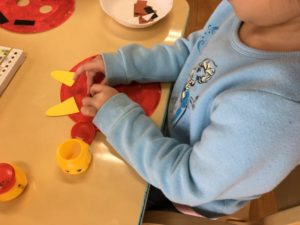 パーツも一つずつ確認しながら貼る姿が微笑ましかったです。