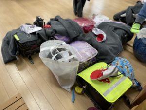 最後の荷物を持って帰ってきた子どもたちです。