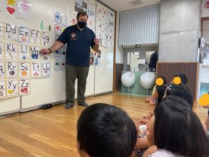 まずはABCからです。さすが、これまでやってきたほし組さんは上手に英語をまねたり、声に出したりすることができていましたよ。