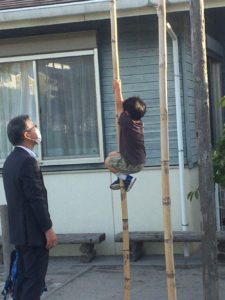 毎日、園庭にある登り棒を練習するお友達がいます。初めは少ししか登れなかった登り棒も毎日、頑張る事でこんなに登れるようになりました!!
