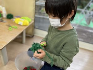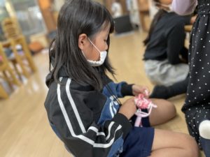 今日も毛糸に触れあっています!