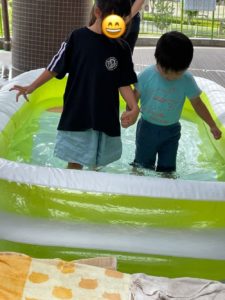 担当の先生から大雨の日の避難の仕方や服装・水が溢れないよう排水溝に砂など入れない約束もしました。水が入ったプールの中を歩く経験もしてみましたよ。
