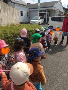 沢山歩けるようになったつき組の子ども達✨そら組になったら知らない道や知らない場所など色んな所に行って欲しいです😊
