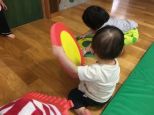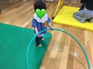 その後はフラフープや穴あきマットで遊びました。