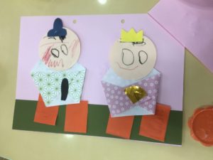 雛祭りの制作をしました。折り紙での着物作りは、パタンパタンってするからねと前日に伝えると、パタンパタンと言いながら上手に折っていましたよ♩前日の話もよ〜く覚えていて感心しました(^_^)