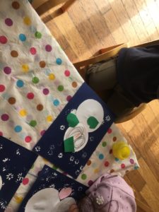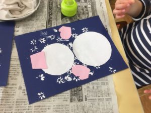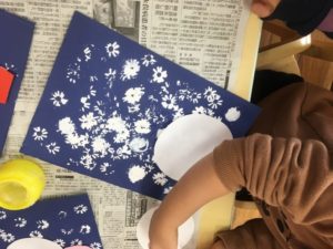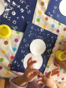 先日、ストローを使って雪の結晶のスタンプをした台紙があります。