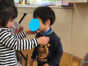 1月生まれのお友達にメダルをプレゼントして、みんなでお祝いしましたよ♪