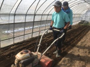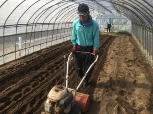 ミニ耕耘機を使っての耕耘作業!!