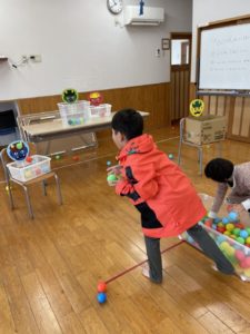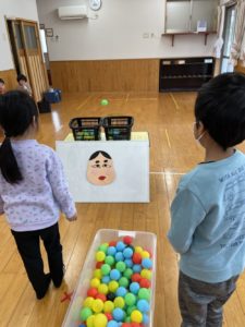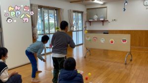 今日は節分にちなんだ「ボール投げ」と、