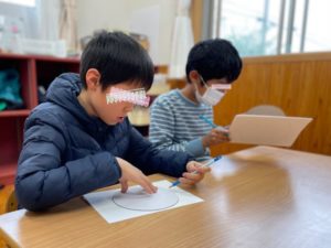 自分たちで作った鬼の的に当てたりすることで