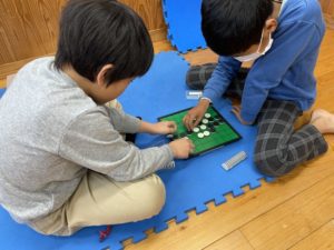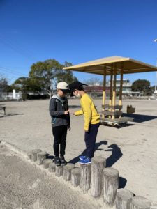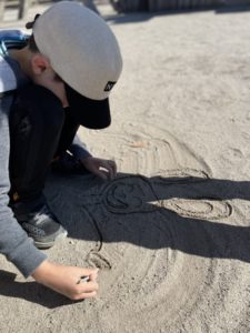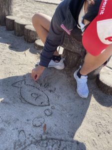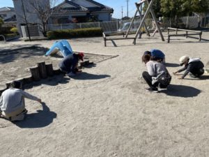 何やら地面にお絵描きが始まりました( ..)φカキカキ