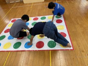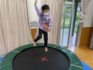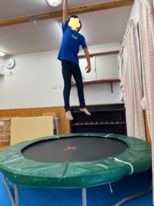 ツイスターゲームで遊んだ後はトランポリンやスイングをし、