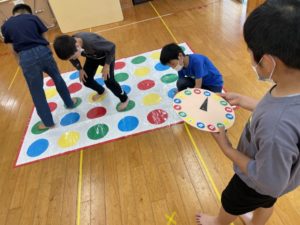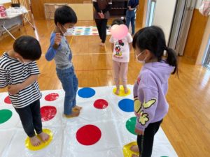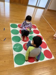 三連休明けの今日もツイスターゲームを行なっています🔴🔵