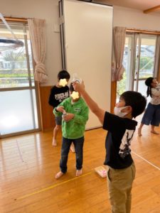 次に手作りのペットボトル鉄砲で