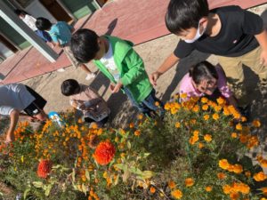 活動の前には園庭に咲いている