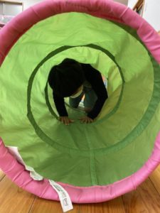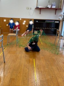 レーザーに見立てたスズランテープを避けたり