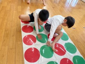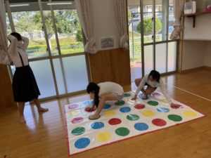 今月、第1週目はツイスターゲームを行なっています🔴🔵