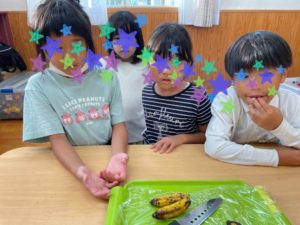 島バナナを試食しています☺