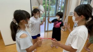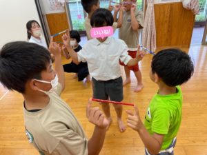 鉛筆で輪を作るレクリエーションをしました!