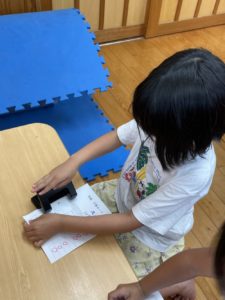 プリントの穴あけや綴ることをしたり
