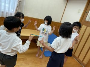 鉛筆で輪を作るレクリエーションをしました!