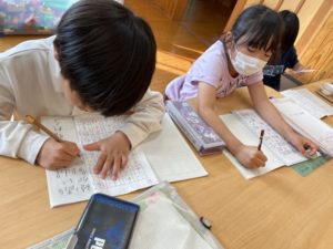 ブロックや転がしドッジボール、そして宿題をしている姿が多く見られました🎶