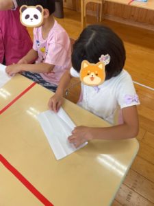 習字紙を細長く折りたたんで