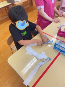 射的コーナーの景品づくりを行いました🔫