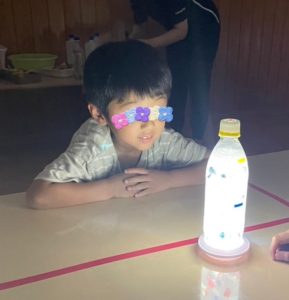 ペットボトルの底から光を当てると・・・