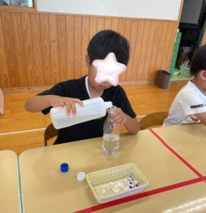 ペットボトルに水と洗濯のりを入れ