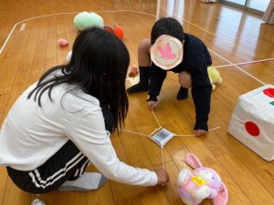友達と協力して様々な物を運んで