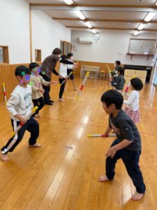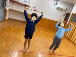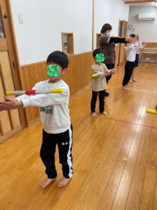 2人組でお互いの棒を投げてキャッチにも挑戦しました😁😁