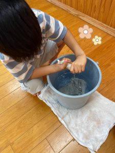 雑巾がけの体勢を通した遊びで・・・