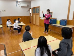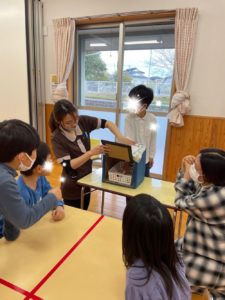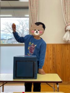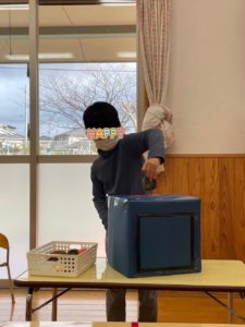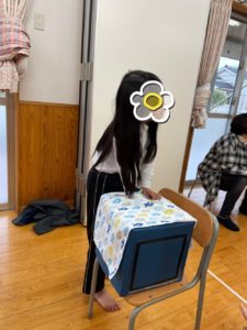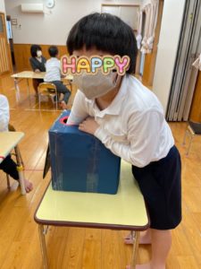中身の見えない箱に興味津々な子ども達😦