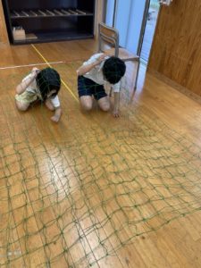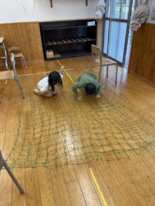 網の下をほふく前進しながらくぐったり