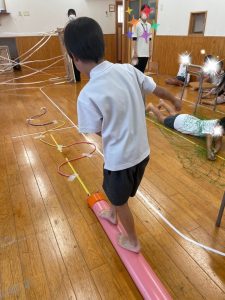 棒の上を落ちないように