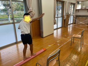 棒の上を落ちないように