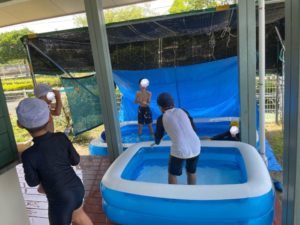 水鉄砲で打ち合いをしたりして
