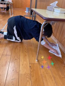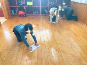 床の雑巾がけを・・・