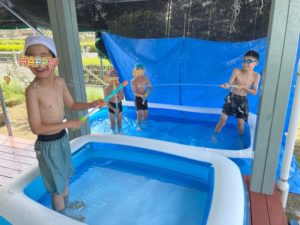 水鉄砲で打ち合いをしたりして
