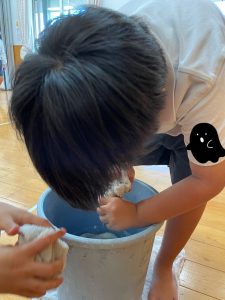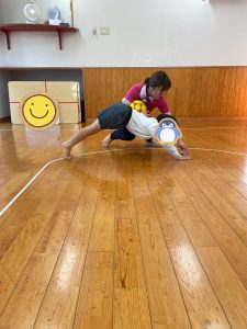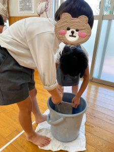 雑巾がけの体勢を通した遊びで・・・