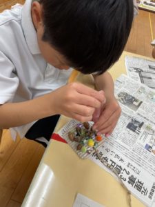 ボンドの量に気を付けながら台紙に素材を貼り付けていきます🤭